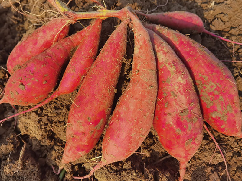 红皮红心,优质、稳产、适应性广,口感好,株型半直立,蔓长中等,分枝多。春薯5000斤左右,夏薯3500斤左右。亩栽4000株左右,尽量起高垄,垄高30厘米左右为宜,中后期注意排水防涝。